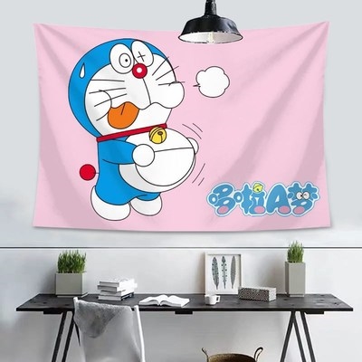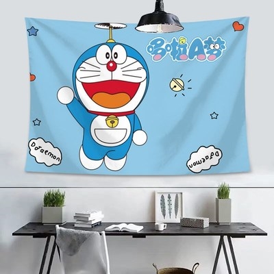 Nền màu đỏ lưới vải in leng keng mèo Doraemon treo tấm thảm phòng ngủ phòng ngủ tập thể đầu giường trang trí tường che - Tapestry