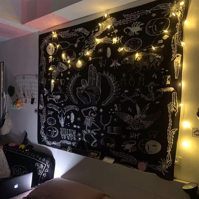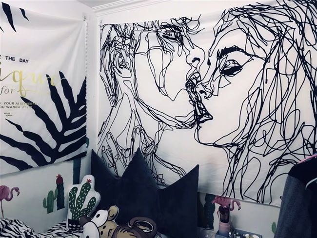 nền phòng ngủ cá tính homestay treo vải dân tộc trang trí phòng vải đen trắng thảm trang trí tường vải - Tapestry