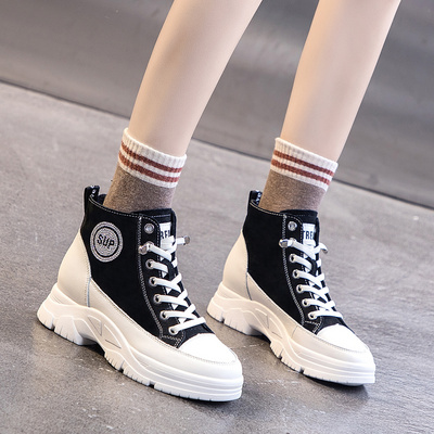 Net nổi tiếng giày cao gót của phụ nữ mẫu mùa thu và mùa đông 2019 tăng chiều cao giày bốt ngắn Martin giày bốt cũ giày bông thường cộng với giày ống nhung - Kính đeo mắt kính