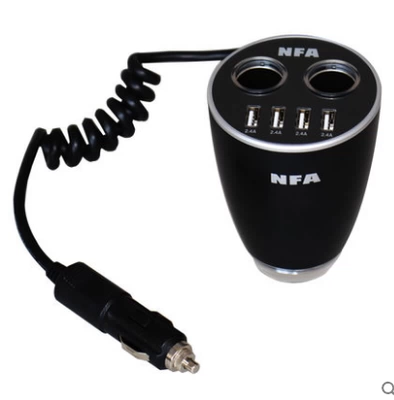 NFA mới Loại tiêu điểm ô tô mới Loại cốc cung cấp điện mở rộng 1 Kéo 4 USB Bộ sạc bật lửa cho xe ô tô 6521 - Khác
