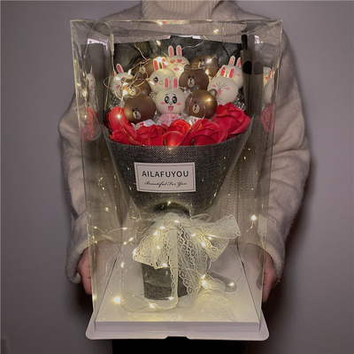 Ngày lễ tình nhân Trung Quốc hoạt hình búp bê búp bê bó quà hộp quà đi bộ trái tim cô gái trái tim Ngày lễ tình nhân món quà sáng tạo - Hoa hoạt hình / Hoa sô cô la