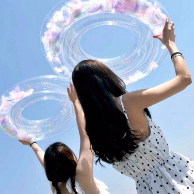 Người lớn mới vòng bơi trẻ em nam và nữ vòng bơi lưới màu đỏ sequin lông vũ trong suốt vòng bơi rung động vòng tròn - Cao su nổi