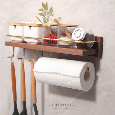 Nhà bếp Đa chức năng Kệ lưu trữ gia vị Giá treo đồ dùng nhà bếp Miễn phí đục lỗ Giá treo khăn giấy treo tường Giá cuộn giấy Giá đỡ bằng gỗ rắn - Phòng bếp