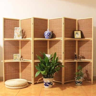Nhà hàng màn hình phân vùng màn hình gấp di động gác xép tủ sách đục lỗ miễn phí kệ hoa bằng gỗ lưới gỗ cột dọc dải tre đan - Màn hình / Cửa sổ