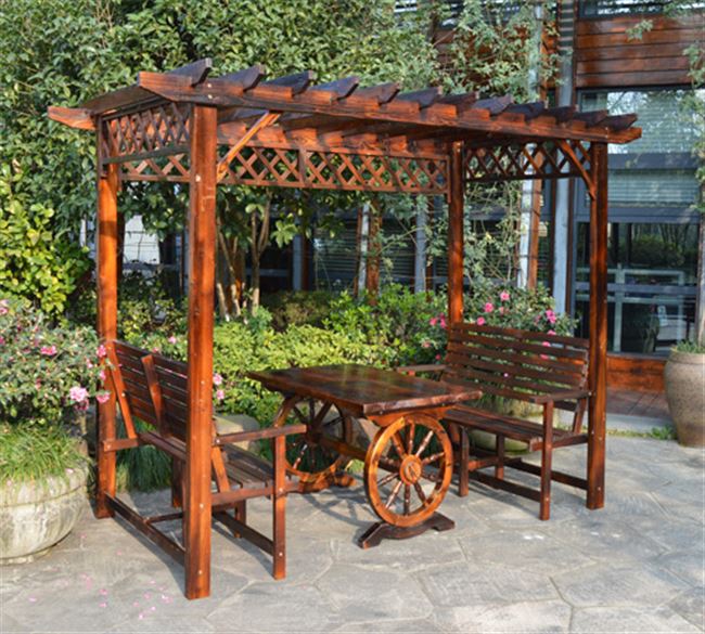 Nhà máy bán hàng trực tiếp giàn nho chống ăn mòn nhà gỗ gian hàng đồ nội thất ngoài trời bàn ghế sân vườn được carbon hóa gỗ rắn vườn leo khung - Bàn ghế ngoài trời / sân