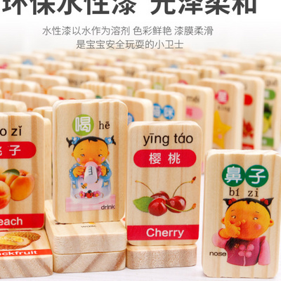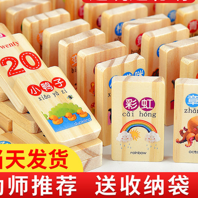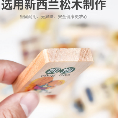 Nhận biết từ vựng Khối xây dựng Giáo dục sớm Đồ chơi giáo dục Cờ quốc gia Dominoes Bé nhận biết bằng gỗ 100 miếng Thế giới hai mặt - Khối xây dựng