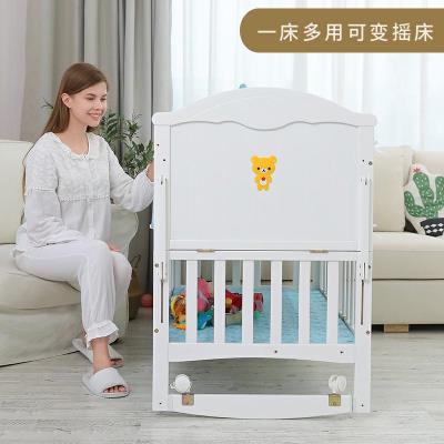 Nôi cao cấp khâu giường lớn gỗ cứng cho bé Nôi đa chức năng màu trắng phong cách Châu Âu Bb ngủ giường trẻ sơ sinh - Giường trẻ em / giường em bé / Ghế ăn