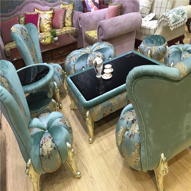 Nội thất khách sạn phong cách châu âu đặc biệt hot tân cổ điển phòng khách kết hợp bàn vuông bàn cafe tròn ghế sofa ghế đẩu bí ngô - Bộ đồ nội thất