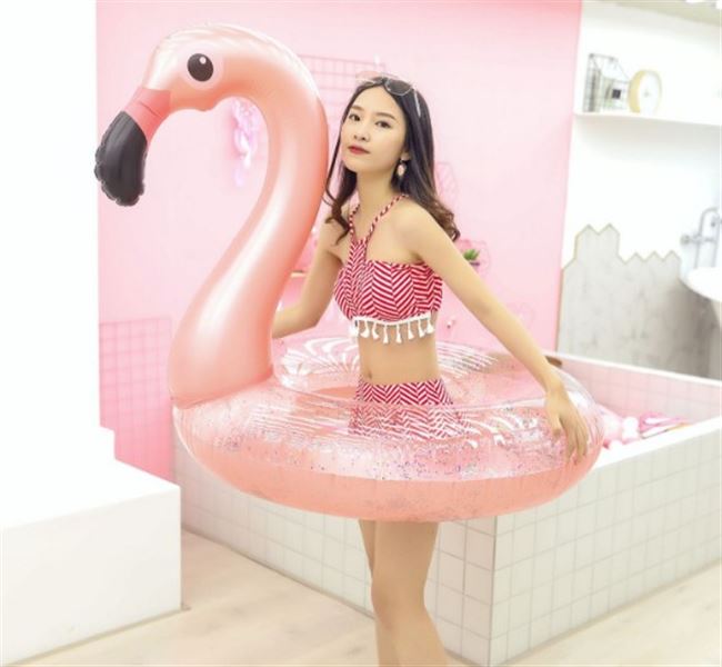 Nước cho trẻ em lưới bơm hơi màu đỏ hồng vàng hồng hạc bơi vòng người lớn gắn kết kỳ lân đồ chơi nổi hàng nổi giường nổi - Cao su nổi