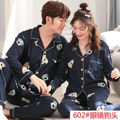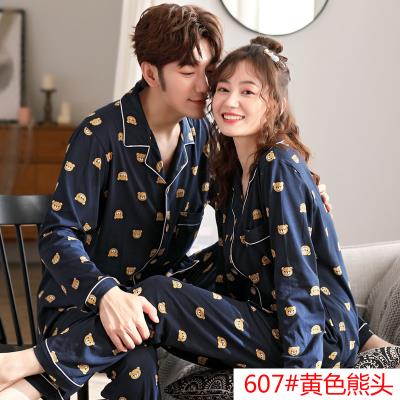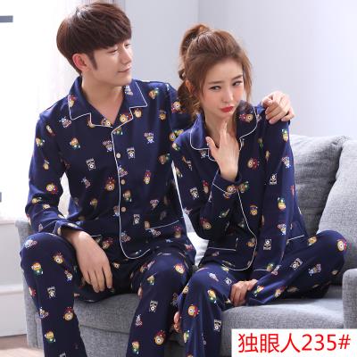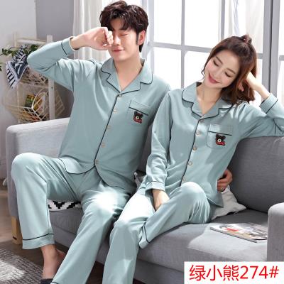 Nút bông dài của người đàn ông lớn ngoại cỡ chất béo bộ đồ ngủ mở cỡ cặp đôi bông mùa xuân và mùa thu mùa thu cặp đôi nữ dài tay áo rộng - Pyjama