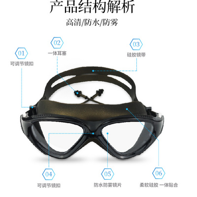 Nút tai Goggles tích hợp chống nước và chống sương mù Kính bơi khung lớn silicon độ nét cao dành cho nam và nữ thiết bị lặn bảo vệ mắt dành cho người lớn - Goggles
