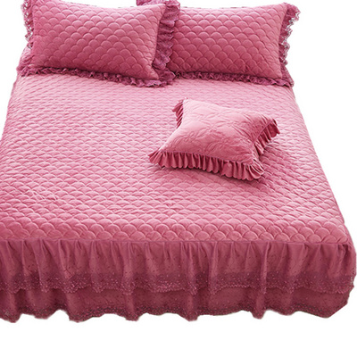 Phiên bản Hàn Quốc của khăn trải giường pha lê nhung ren chần bông một mảnh mùa thu và mùa đông, khăn trải giường dày ngắn sang trọng ấm áp 1,5 / 1,8 / 2 mét - Váy Petti