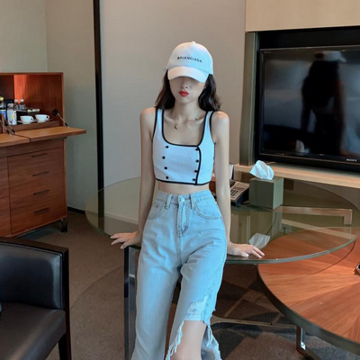 Phiên bản Hàn Quốc của phong cách sang trọng phần ngắn gợi cảm lộ rốn tương phản màu quấn áo yếm hàng đầu mùa hè mới mặc ngoài nhỏ vest nữ - Áo ba lỗ