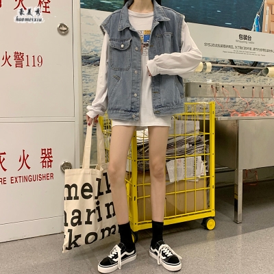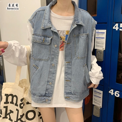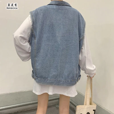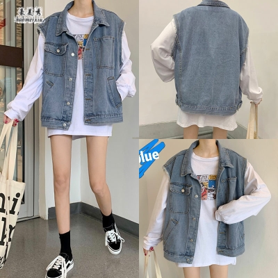 Phiên bản lớn của phụ nữ phiên bản Hàn Quốc mới của áo khoác denim lỏng lẻo MM200 pounds áo khoác không tay hoang dã giản dị. - Áo vest