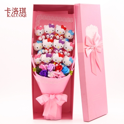 Phim hoạt hình Hoa Kitten Bó hoa Búp bê làm bằng tay cho bạn gái Bạn cùng lớp Phim hoạt hình Món quà sinh nhật bạn gái Hoa xà phòng - Hoa hoạt hình / Hoa sô cô la