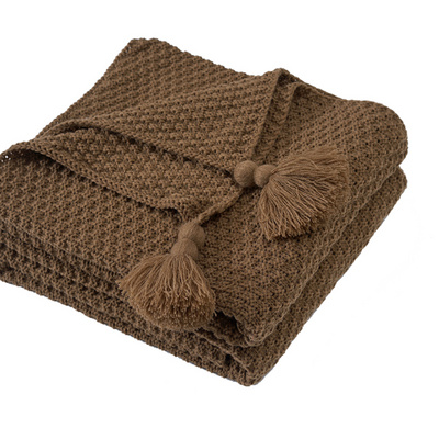 Phong cách châu Âu màu nâu giản dị mẫu phòng ngủ giường mềm tua dệt kim chăn phòng khách ghế sofa với chăn mền - Ném / Chăn