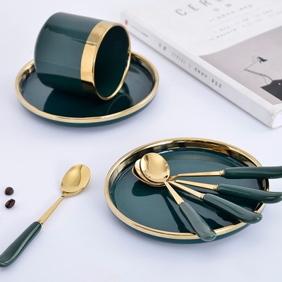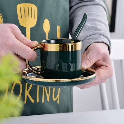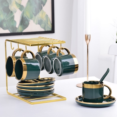 Phong cách Châu Âu nhẹ nhàng sang trọng cà phê ngọc lục bảo và đĩa đựng cà phê gốm sứ gia dụng buổi chiều bộ đồ dùng cà phê với ngăn đựng cốc Bắc Âu - Cà phê