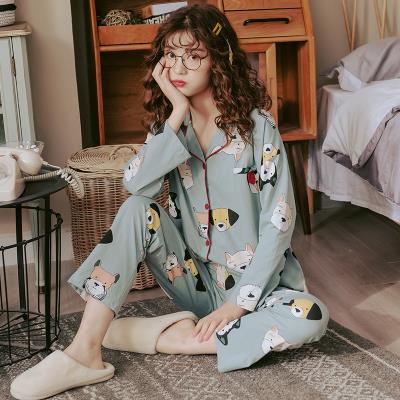 Phong cách mùa thu 200 catties mùa thu cộng với bộ đồ dài chất béo cotton tinh khiết của phụ nữ 2019 kích thước cộng với bộ đồ ngủ dài tay của phụ nữ mùa thu phong cách mới - Pyjama