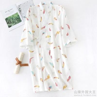 Phong cách Nhật Bản áo ngủ kimono đồ ngủ nữ vải bông tinh khiết mùa xuân và mùa thu B mùa hè mỏng lỏng mồ hôi hấp dịch vụ tại nhà yukata và - Night Robe