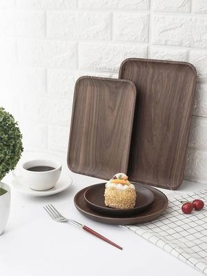 Phong cách Nhật Bản tách trà đĩa khay bằng gỗ óc chó gỗ màu đen gỗ óc chó màu đen Bắc Âu đĩa hình chữ nhật đĩa ăn tối tách cà phê đĩa gỗ - Tấm