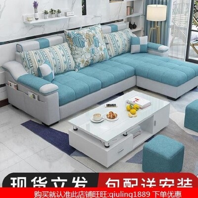 Phòng khách, ghế sofa, bàn cà phê, cuộc họp đường thẳng, bốn người, trong nhà 210cm, hai mét, bảy bộ kết hợp vải với bàn đạp - Ghế sô pha