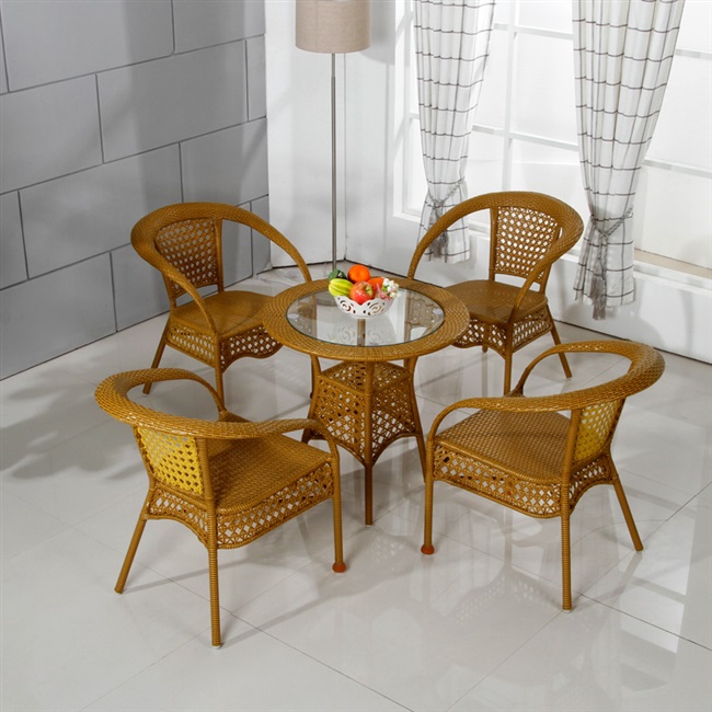 Phòng khách mây ngoài trời ban công bàn ghế mây ghế cà phê ba mảnh năm mảnh đồ nội thất thư giãn kết hợp ghế - Bàn ghế ngoài trời / sân