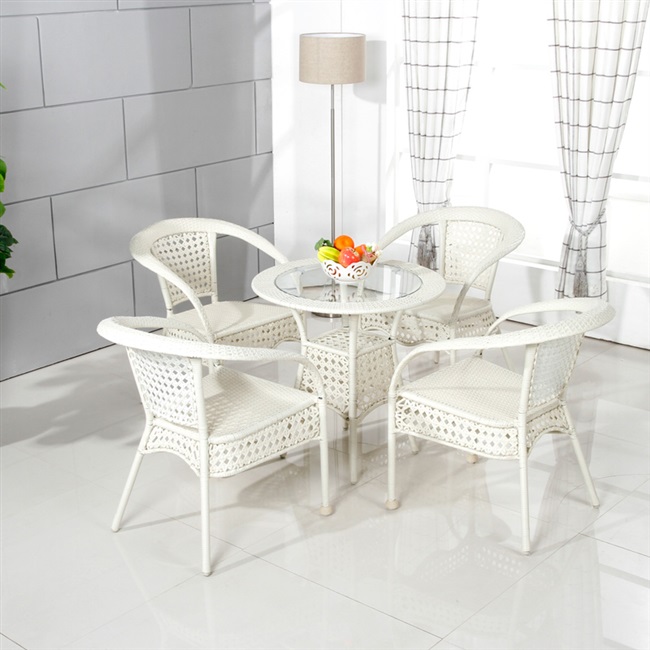 Bốn ghế và một bàn nhỏ (màu ghi) để gửi đệm