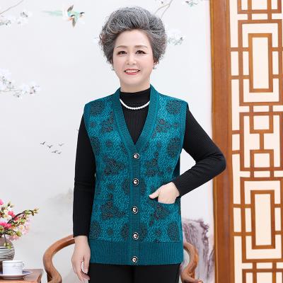 Phụ nữ trung niên và cao tuổi mùa thu đông quần áo vest vest bà ngoại dệt kim mặc áo ghi lê bà già áo khoác cardigan - Áo vest