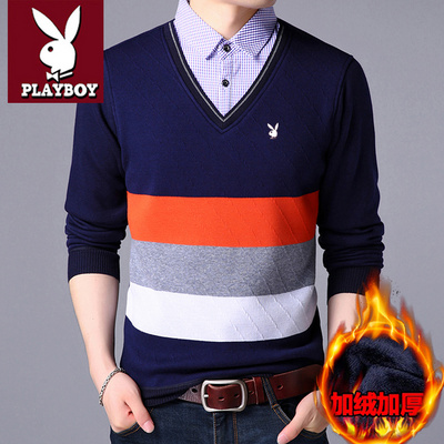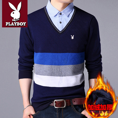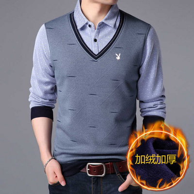 Playboy mùa thu và mùa đông áo len nam trung niên cộng với áo len nhung dày ấm áp giả hai chiếc áo len nam - Áo len