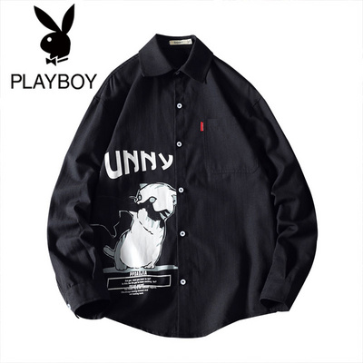 Playboy mùa xuân áo dài tay nam phiên bản Hàn Quốc của xu hướng giản dị đẹp trai thương hiệu áo phông in hình áo khoác nam - Áo