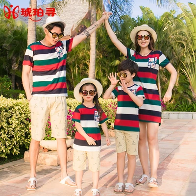Quần áo của cha mẹ-con kỳ nghỉ hè bên bờ biển một gia đình ba mẹ váy đi biển mùa hè mẹ và con gái váy sọc mẹ và con - Trang phục dành cho cha mẹ và con