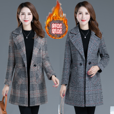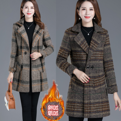 Quần áo mới phổ biến mới dành cho phụ nữ trung niên Quần áo của mẹ mùa thu và mùa đông Quần áo len dày kẻ sọc giữa dài - Trung bình và dài Coat