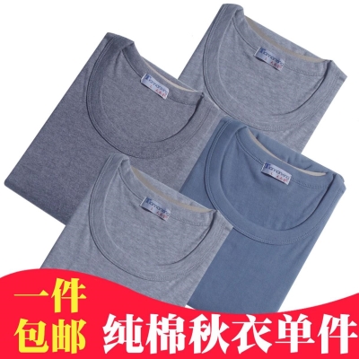 Quần áo nam mùa thu của nam giới đơn thấp cổ tròn thanh niên trung niên dưới cùng dài tay áo len bông mùa đông cộng với kích thước hàng đầu - Áo ấm