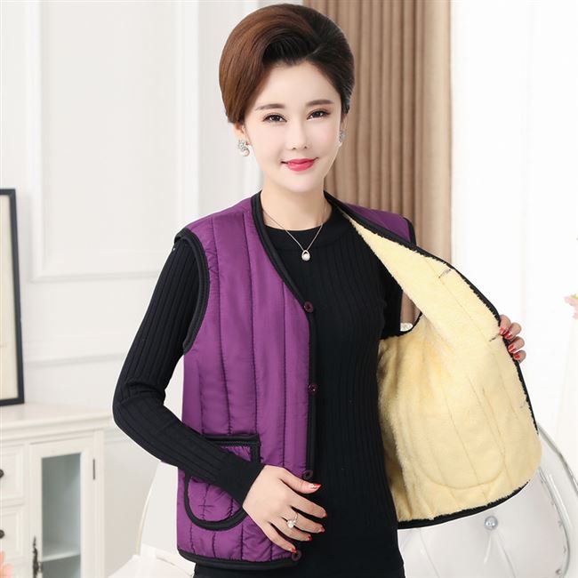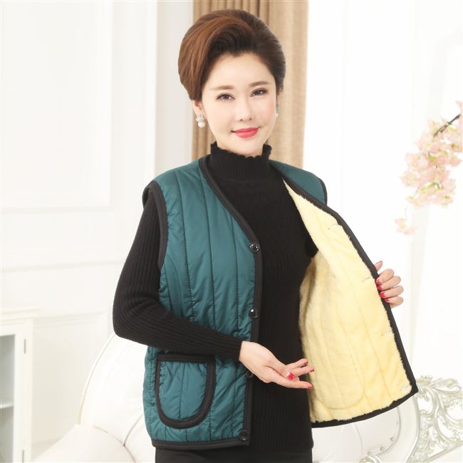 Quần áo phụ nữ trung niên và cao tuổi cộng với áo ghi lê nhung dày thắt lưng bà ngoại quần áo mùa thu và mùa đông dày cộng với phân bón áo bông XL - Áo vest