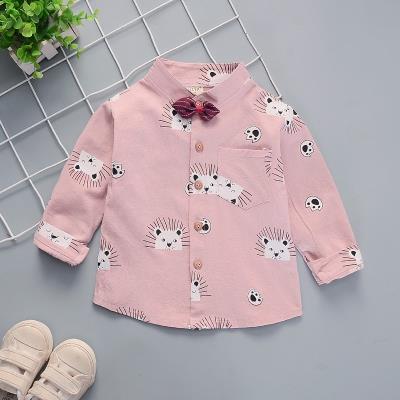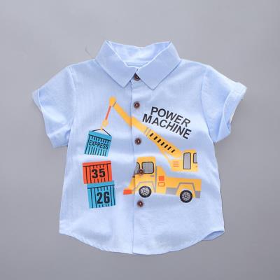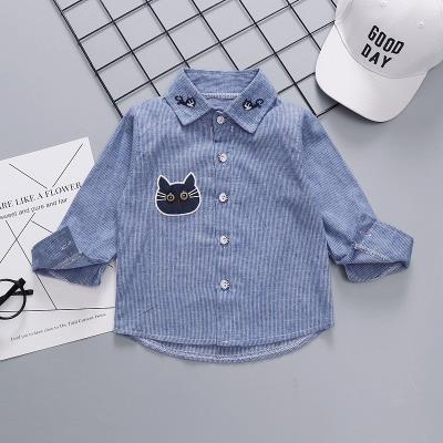 Quần áo trẻ em áo sơ mi sọc làng, áo sơ mi bé trai, áo khoác bé trai in thêu bông dài, tay ngắn hoạt hình - Áo sơ mi