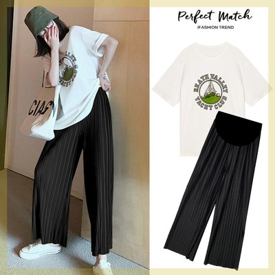 Quần bầu bà bầu mẫu xuân thu, quần ống rộng ống suông, quần ống rộng mùa xuân hè, quần chín điểm, bà mẹ triều, quần áo bà bầu mùa hè - Phụ nữ mang thai quần / quần bụng