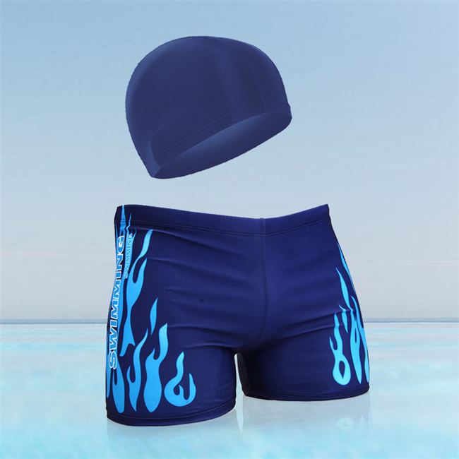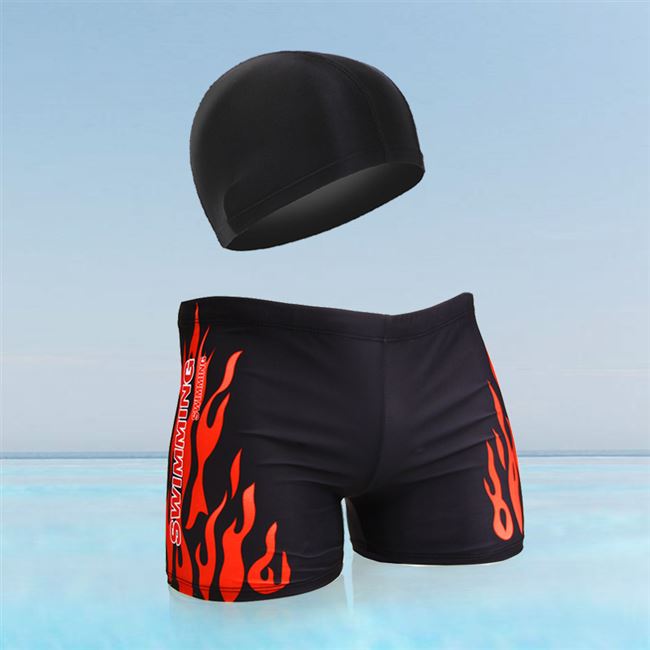 Quần bơi boxer cổ điển, quần bơi nam thoải mái, thiết bị áo tắm in hình ngọn lửa nam kích thước lớn không thấm nước - Nam bơi đầm