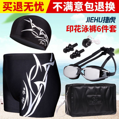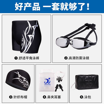 Quần bơi nam võ sĩ quyền anh người lớn suối nước nóng cộng với kích thước áo tắm mũ bơi kính bơi nam giới quần bơi nhanh khô thiết bị thiết bị - Nam bơi đầm