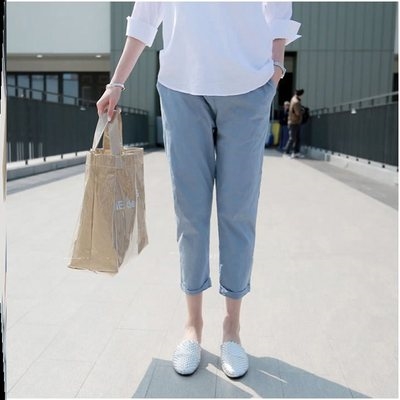 Quần của phụ nữ mang thai mùa xuân và mùa thu phong cách mỏng bên ngoài mặc ngoài thời trang giản dị của phụ nữ bảy chín điểm thủy triều mẹ mặc quần legging cotton và lanh - Phụ nữ mang thai quần / quần bụng