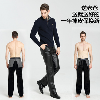 Quần da nam trung niên và cao tuổi cộng với nhung dày mùa đông cộng với size cao eo rộng ấm áp lạnh và chống mưa xe máy cha - Quần da