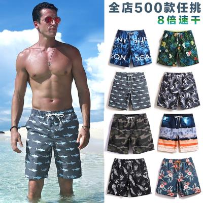 Quần đi biển của nam giới nhanh khô thoáng nóng mùa xuân quần đùi lót quần bơi quần năm điểm bên bờ biển kỳ nghỉ hoa quần short thủy triều bãi biển - Quần bãi biển