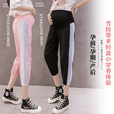 Quần ống đứng cho phụ nữ mang thai, quần đùi ba lỗ mỏng mùa hè, quần đáy, hỗ trợ voan bên ngoài, quần chín điểm thời trang thông thường - Phụ nữ mang thai quần / quần bụng