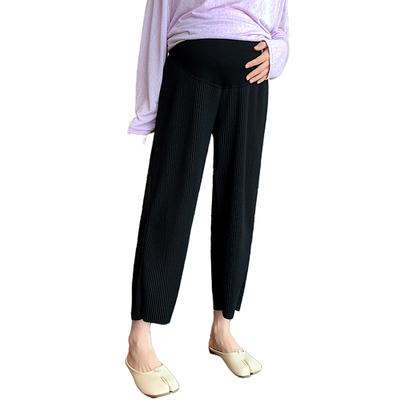 Quần phụ nữ mang thai màu đỏ lưới mùa hè kiểu mỏng mặc ngoài thời trang thời trang mẹ rộng rãi size lớn băng lụa tây quần chín điểm - Phụ nữ mang thai quần / quần bụng