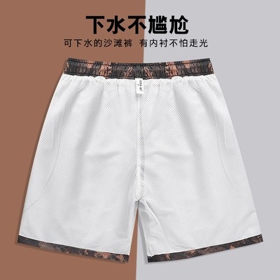 Quần Shahuai của phụ nữ nhanh chóng làm khô người đàn ông bãi biển rộng rãi với lớp lót hai lớp bơi nước khu vườn năm điểm phụ nữ ngắn thở - Quần bãi biển