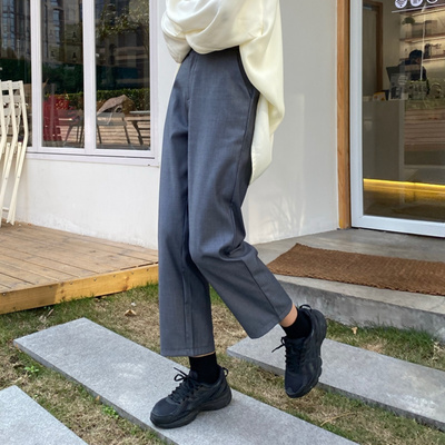 Quần tây nữ dáng suông rộng 2020 mùa xuân phiên bản mới của Hàn Quốc là quần mỏng và linh hoạt màu xám khói quần harem quần nữ - Quần Harem