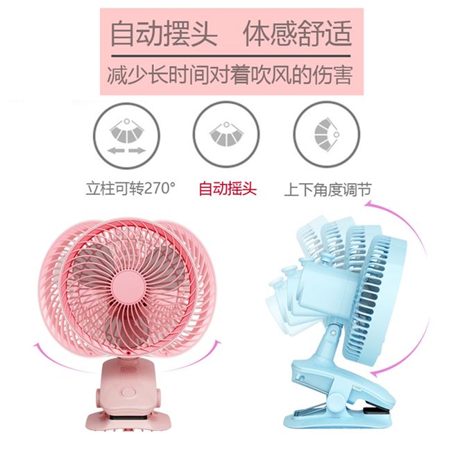 Quạt mini usb sạc clip nhỏ quạt tự động lắc đầu câm xe đẩy trẻ em trẻ em quạt giường - Quạt điện