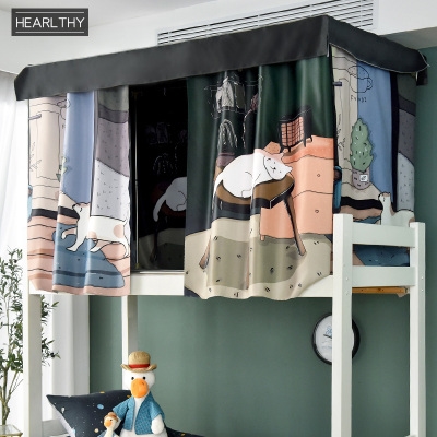 Rèm giường ký túc xá phòng ngủ sinh viên đại học giường tầng trên bến dưới nam và nữ rèm giường vật lý che nắng lụa đen bảo vệ môi trường mèo dễ thương - Bed Skirts & Valances