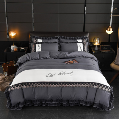 Roland Home Textiles chính thức hàng đầu lưới màu đỏ đơn giản phong cách Bắc Âu ga trải giường bốn mảnh bông chăn ga trải giường O - Bộ đồ giường bốn mảnh