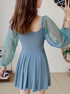 Sản phẩm mới thịt bụng mỏng hơn 2020 áo tắm suối nước nóng mới cảm giác nữ tính gom lại để che váy một mảnh bảo thủ Hàn Quốc - Bộ đồ bơi hai mảnh