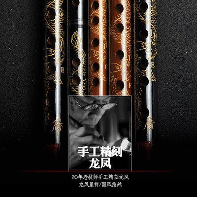 Sáo rồng phượng chạm khắc thủ công cao cấp / Pearl Ding Zilin Sáo trúc đắng cắm đôi tinh xảo / Nhạc cụ nguyên bản - Nhạc cụ dân tộc